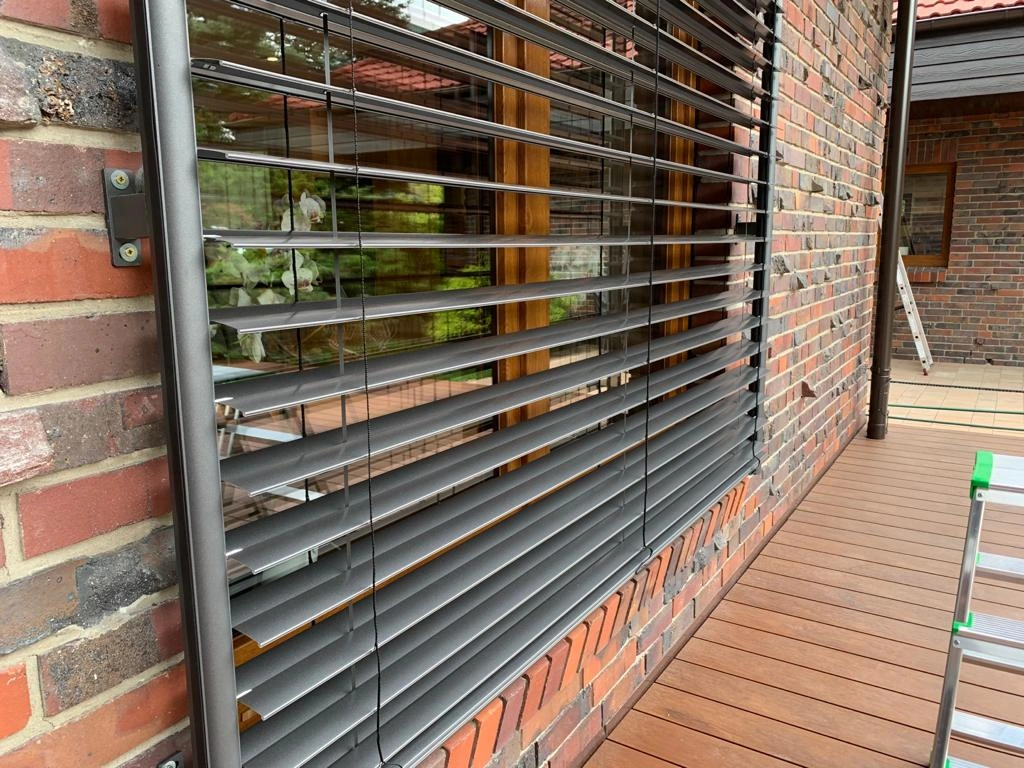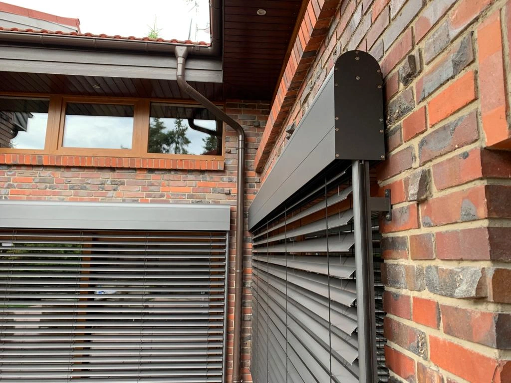 - Rolety zewnętrzne – montowane na elewacjach i w nadprożach, w wersji manualnej lub z napędem Somfy. Chronią przed słońcem, hałasem i zapewniają dodatkowe zabezpieczenie antywłamaniowe.